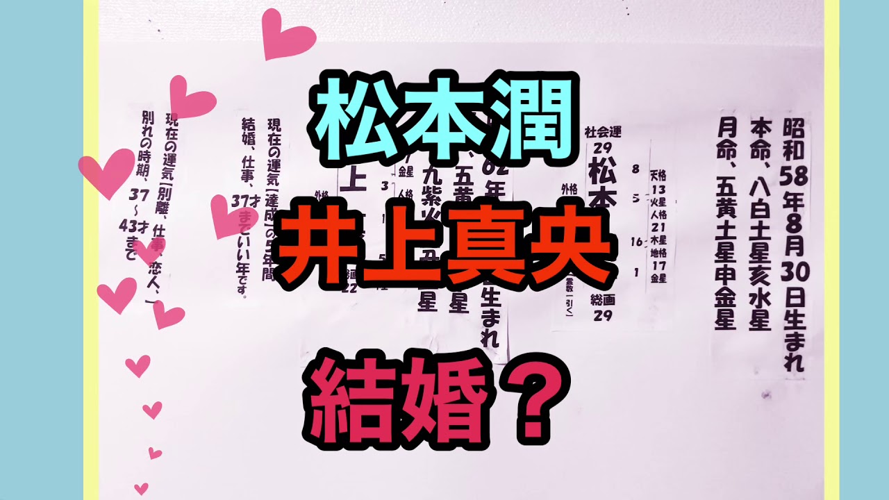 最近解散されたジャニーズの人気アイドルグループ「嵐」の松本潤さんと女優の井上真央さんを五行陰陽姓名判断をいたします。