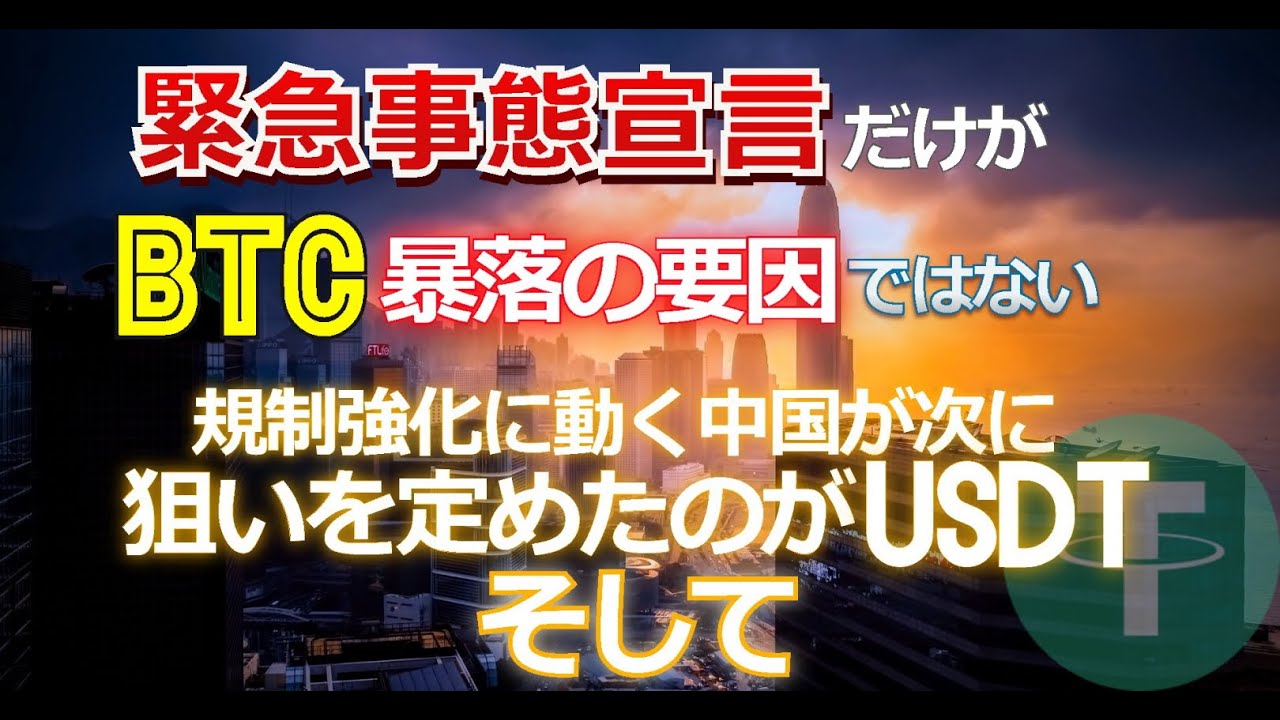 東京都に4度目の緊急事態宣言が発令されました。日経も上海、香港でも下落で場を開けています。当然、BTC相場も軟調な展開となっています。では直接的にBTC相場を下落させた要因、規制強化中の中国が次に狙いを定めたUSDTテザーです。