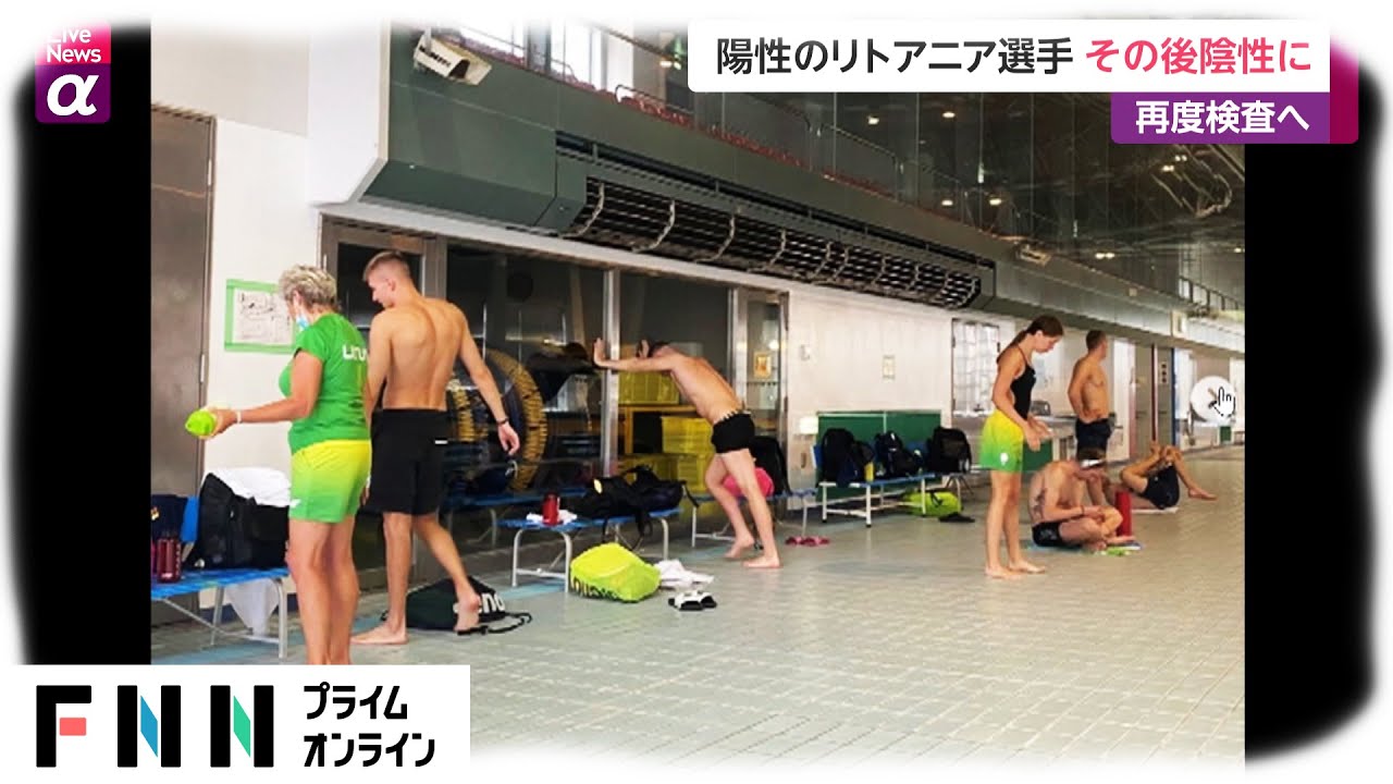 リトアニアの水泳代表の事前キャンプで平塚市に滞在している30代の男性選手は、7日に来日した際の空港検疫では陰性だったが、8日に受けた簡易検査の結果、9日午前、陽性の疑いが確認された。