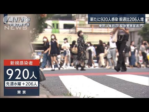 東京都が7日に確認した新型コロナウイルスの新たな感染者は920人でした。先週水曜日より、200人以上増えています。重症の患者は、前の日から1人減って62人。3人の死亡が確認されています。