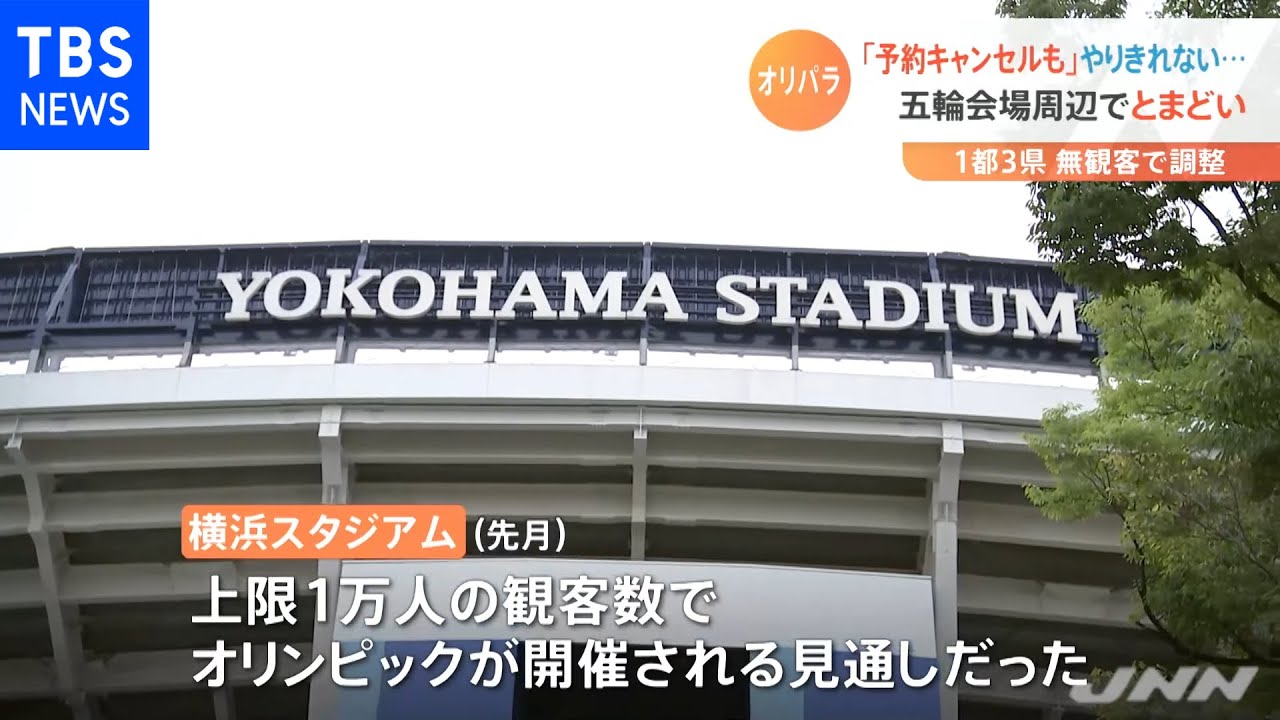 スタジアム近くのホテルでは先月の「観客数上限1万人」の決定を受けて予約が入りだし、オリンピック期間中は部屋数の半分ほどが埋まってきていましたが・・・