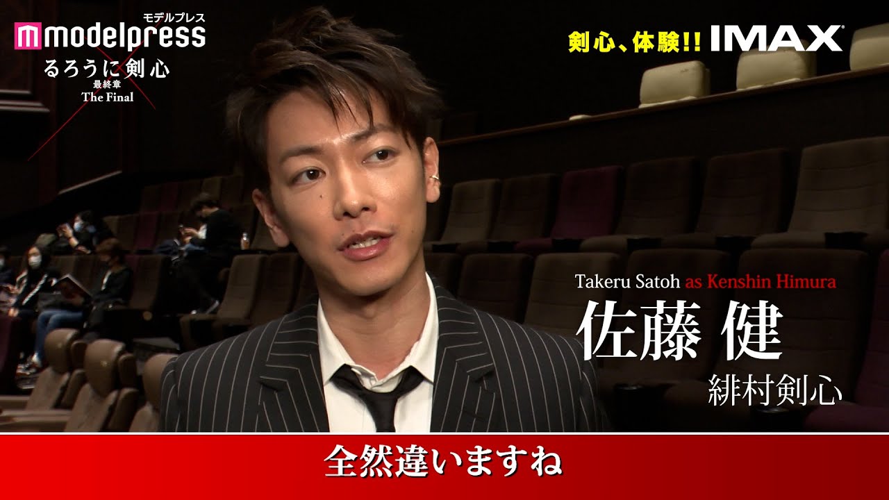 冒頭から怒濤のノンストップ・アクションを追体験できる“ライド感”と圧倒的な“臨場感”を実現させる 4DX 上映。アクションとリンクして動く激しい揺れや現場を感じさせる匂いなど凄まじい臨 場感に撮影時を思い出し、鳥肌が止まらないと大盛り上がり。刺激的で映画の楽しさを広げる 4DX 上映について佐藤 は「まだお互い『好き』とか言い合えていない、どうなんだろうな?って思っている男女がいるなら是非 4DX に行って、吊り橋効果でお互いのドキドキを高めていただいた後に告白していただければ、最高の一日になると思います!」と恋のアドバイスをするように、デート映画にもピッタリだ。「一度観ただけでは分からないことが沢山あるし、僕自身も今回、全然違った感情になりました。皆さんにも色々な種類で楽しんでもらえるのはありがたい。」とシリーズ10年の歴史で初の 〈IMAX/4DX/MX4D〉上映に対し、喜びを露わに。『The Final』に続き、『The Beginning』の IMAX®/4DX/MX4D 上映も決定、それぞれの上映で体感することができる『るろうに剣心』シリーズの集大成に込められた全てを、寸分も逃さず、何度も噛み締めながらお楽しみいただきたい!