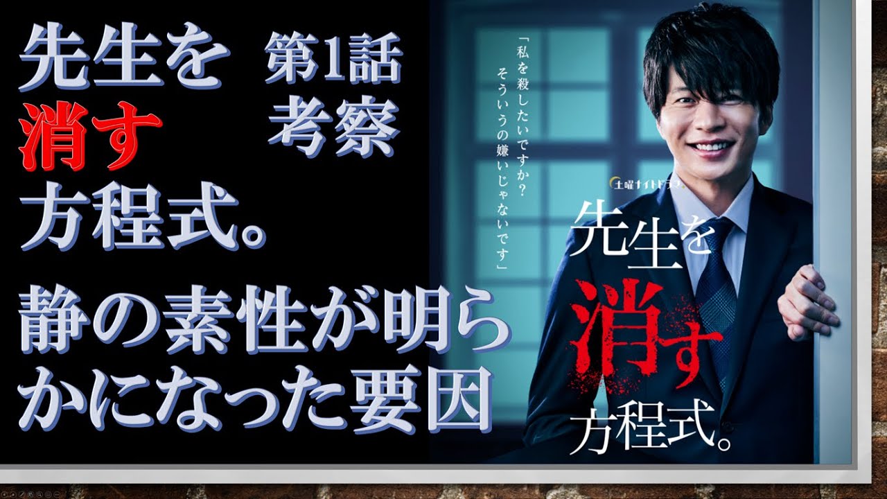 ドラマ【先生を消す方程式。 第1話考察 】静の素性が明らかになった要因【田中圭出演作】と題して、土曜、23時からテレビ朝日系列で放送されているドラマ【先生を消す方程式。 】について、第1話で気になった点について考察してみたいと思います。