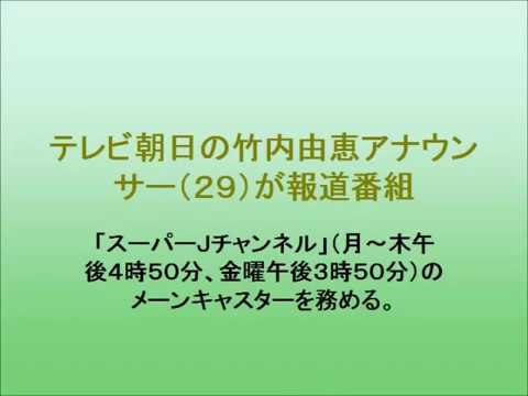 テレビ朝日の竹内由恵アナウンサー(29)が報道番組「スーパーJチャンネル」(月~木午後4時50分、金曜午後3時50分)のメーンキャスターを務める。