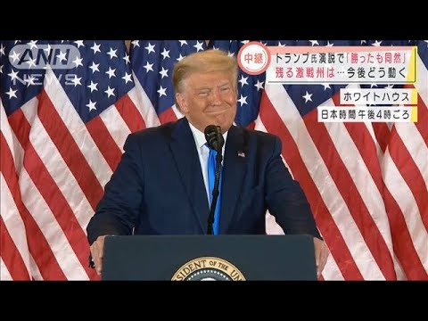 Share Facebook Twitter Pinterest LinkedIn 大接戦となったアメリカ大統領選。トランプ大統領が開票後に初演説し、「勝ったも同然」などと支持者に向けてアピールしました。ワシントン支局から布施哲支局長の報告です。 [テレ朝news] ANNNEWSprovidedTV ASAHItvasahiアメリカテレビ朝日テレ朝トランプ大統領ニュースニュース企画大統領選挙本編のみ米大統領選2020