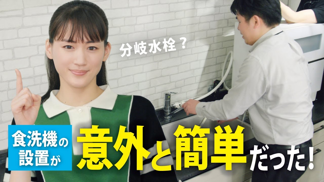 パナソニックの食洗機の強力シャワーと簡単設置を、綾瀬はるかさんと社員が紹介します。