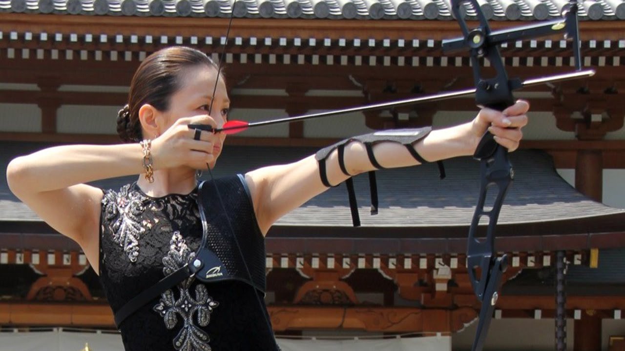イベントには映画の日本語吹き替え版でブラック・ウィドウ役を担当した米倉さんのほか、ニック・フューリー役の竹中直人さん、ホークアイ役のお笑いコンビ「雨上がり決死隊」の宮迫博之さんも登場。“弓”を武器とするアベンジャーズの一人、ホークアイにちなんで、奉納した3本の矢で祈願しながら的を射抜く弓射式も行われ、米倉さんは、ピンヒール姿ながら矢を的の上のほうに的中させ、うれしそうな笑顔を見せた。