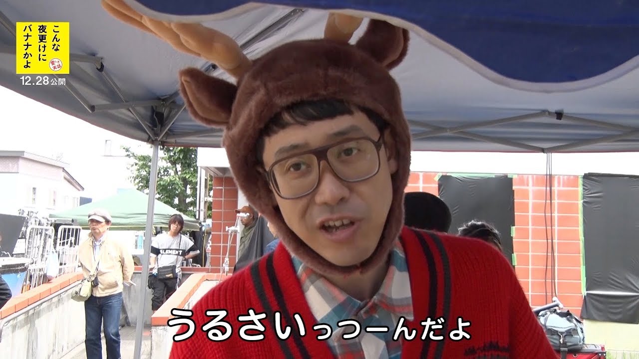 俳優の大泉洋が主演を務める映画『こんな夜更けにバナナかよ 愛しき実話』が、12月28日より全国公開。今回解禁されたメイキング映像では、キャストたちに思わず「○○かよ!」とツッコミたくなるオフショットが満載。減量中にもかかわらずお菓子に手を出す大泉洋や、休憩中に映画撮影に挑戦する三浦春馬と高畑充希、関西出身で北海道弁に苦戦する綾戸智恵など、映画撮影中のキャストたちのなかなか見ることのできない違った顔を見ることができる。特に大泉が大勢のエキストラを前にスピーチをする映像は爆笑必至で、「水曜どうでしょう」以来行った“ある事”も白状している。