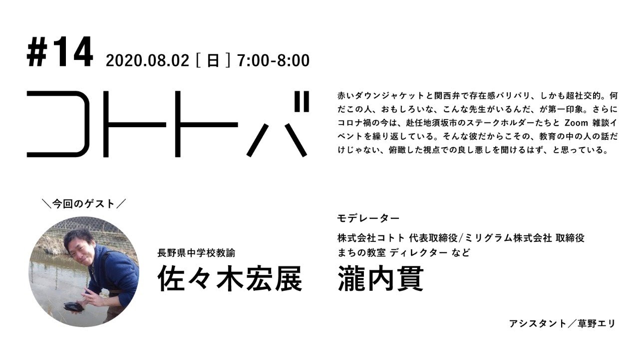 次の3人のテーマは「教育のいまを探る」です。運営チーム内には子どもがいたり、教育の仕事に関わる人がいて、今だからこその、いろんな場で起きていること(改めて教育のあり方について問われている現場も多くあるだろうという想像から)を聞いてみたいという話があがりました。もちろん、3人との対話でそのすべてを探れるわけではなく、もしかしたら大きなテーマとしても第一回目となる可能性が高いとは感じてはいるので、まずは、地域に出ていく現役の先生から、PjBL構築支援をするNPOの代表から、社会の中の学びをつくることの裏方で働く方から、さまざまお聞きし、その一端を外から見てみたいと思います。