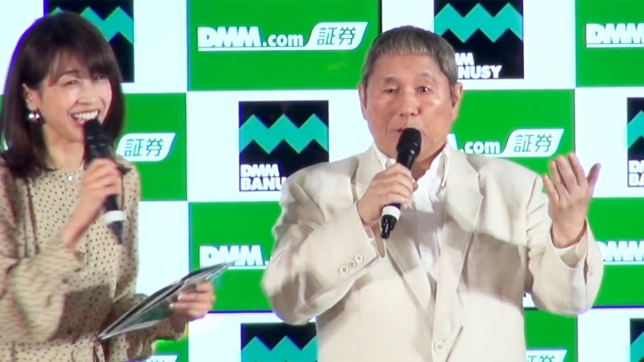 その後、北野武が登壇し「DMMバヌーシー」の所属馬「キタノコマンドール」号の皐月賞の結果を予想。競馬の話題に事務所独立問題のギャグをからめながら、北野は集まった取材陣の期待通りの自虐や毒舌を見せた。