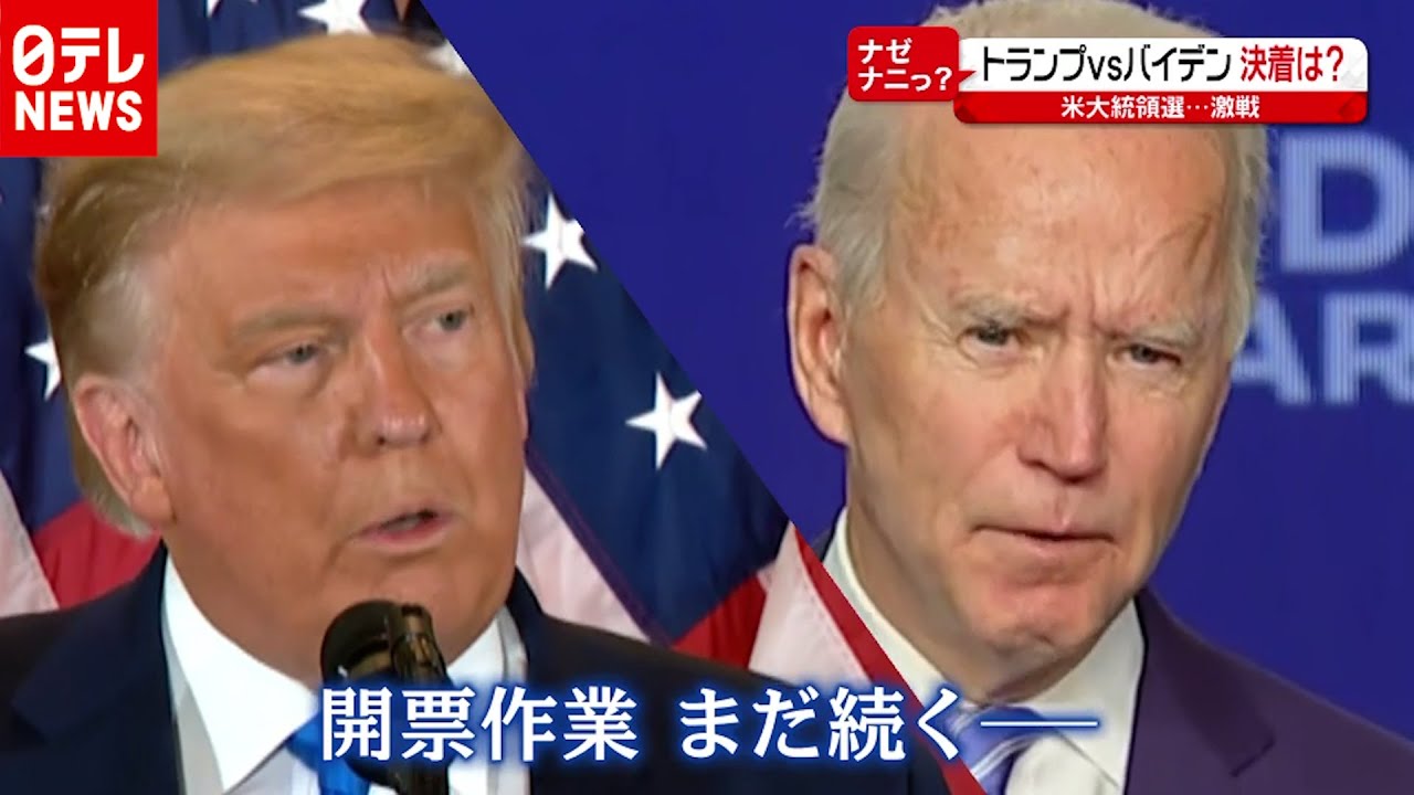 Share Facebook Twitter Pinterest LinkedIn 異例の大接戦となり、決着まで長期化が予想されるアメリカ大統領選挙。 なぜこんなに揉めている? アメリカで発生している「パープルリング現象」とは? 最新情報や大統領選の今後の流れについて解説します。 (2020年11月5日16時ごろ放送 news every.「ナゼナニっ?」より) #日テレ #newsevery #最新ニュース #新型コロナウイルス #COVID19 ◇日本テレビ報道局のSNS Twitter Facebook Instagram TikTok ◇【最新ニュースLIVE配信中】日テレNEWS 24 HP アメリカ大統領選挙