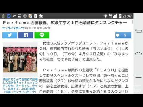 Perfumeは同作の主題歌「FLASH」を担当しておりスペシャルゲストとして登場。あ~ちゃんこと西脇綾香(27)は物語の競技かるたにちなんだダンスの一部を主演女優、広瀬すず(17)と共演の女優、上白石萌音(18)、会場に集まった約160人の女性観客にレクチャー。「手裏剣みたいにならないようにするのが大事」とコツを説き、全員で盛り上がった。