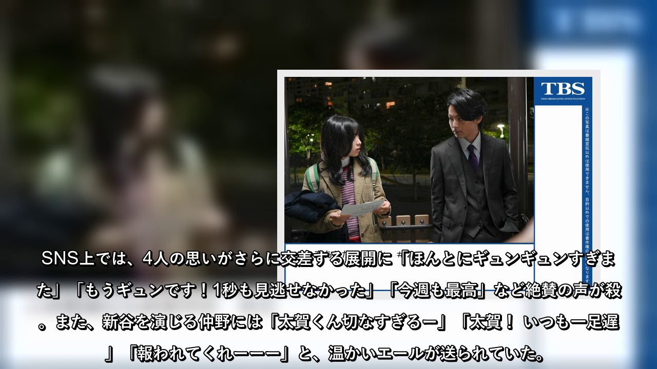 牛丼を持って会社に戻った浅羽は、キッチンで寝落ちしてしまった樹木を見つけると、ジャケットを優しくかける。そこへ、キッチンに戻ってきた新谷がその場面を目撃。樹木に恋心を抱いていた彼は驚きの表情を浮かべる。