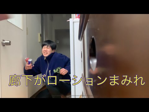 【ドッキリ】廊下をローションまみれにして友達を出迎えるドッキリ