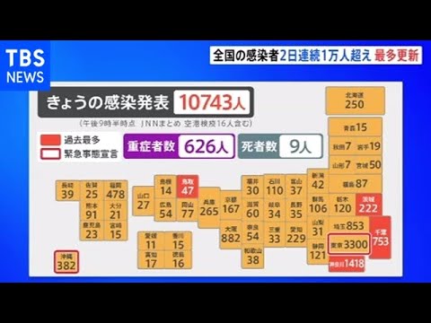 全国では新たに1万743人の感染が発表され、2日連続で1万人を超え、過去最多となりました。