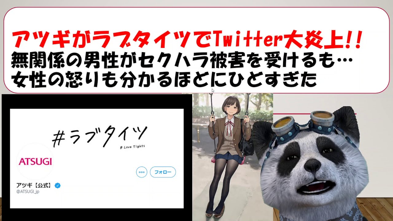 Share Facebook Twitter Pinterest LinkedIn 男性は全員性的な目で見るみたいな風潮も悲しいけど、 タイツメーカーが企業として女性の目線を持っていないのが 一番の問題だと思う。 参考リンク タイツメーカー炎上騒動にひろゆき氏「男性は純粋被害者」賛同集まる 【#ラブタイツ】アツギのツイッター企画、「動悸がおさまらない中の人」発言がきっかけで大炎上 「いいね」した福助が謝罪する事態に ラブタイツキャンペーンに関するお詫びとご報告 #ラブタイツ #アツギ #ひろゆき アツギ炎上