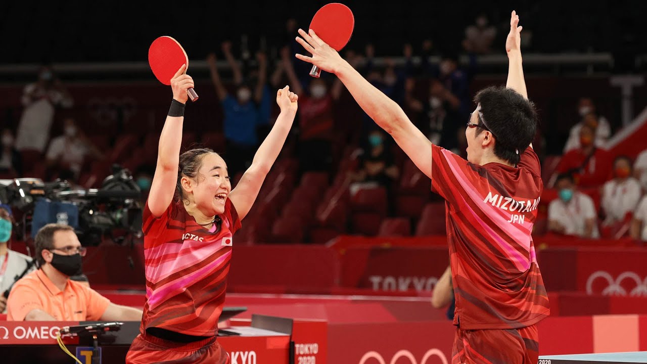 【五輪連続写真】水谷隼・伊藤美誠が金メダル 卓球混合ダブルス決勝