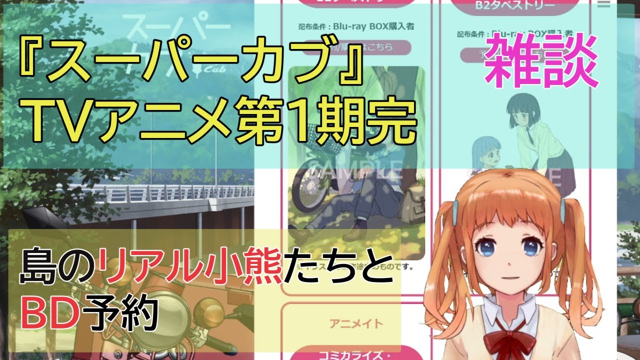 Share Facebook Twitter Pinterest LinkedIn トネ・コーケンさんの小説『スーパーカブ』のTVアニメーションシリーズの第12話(第1期完結話)までを視聴した感想です。 映像、音楽ともに素晴らしい作品でした。原作とは違った魅力のある作品になったと思います。現状のキャスト・スタッフにて、第2期以降を継続して製作していただきたく、そのためにBDを予約しましたのでその様子も紹介します。 アバターちゃんは、しずく(Powered by Live2D)です。 TVアニメ スーパーカブスーパーカブテレビアニメ