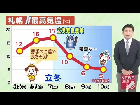 札幌の最高気温で見ると、あす・あさってと15℃を超えて、寒さが緩む見込みです。