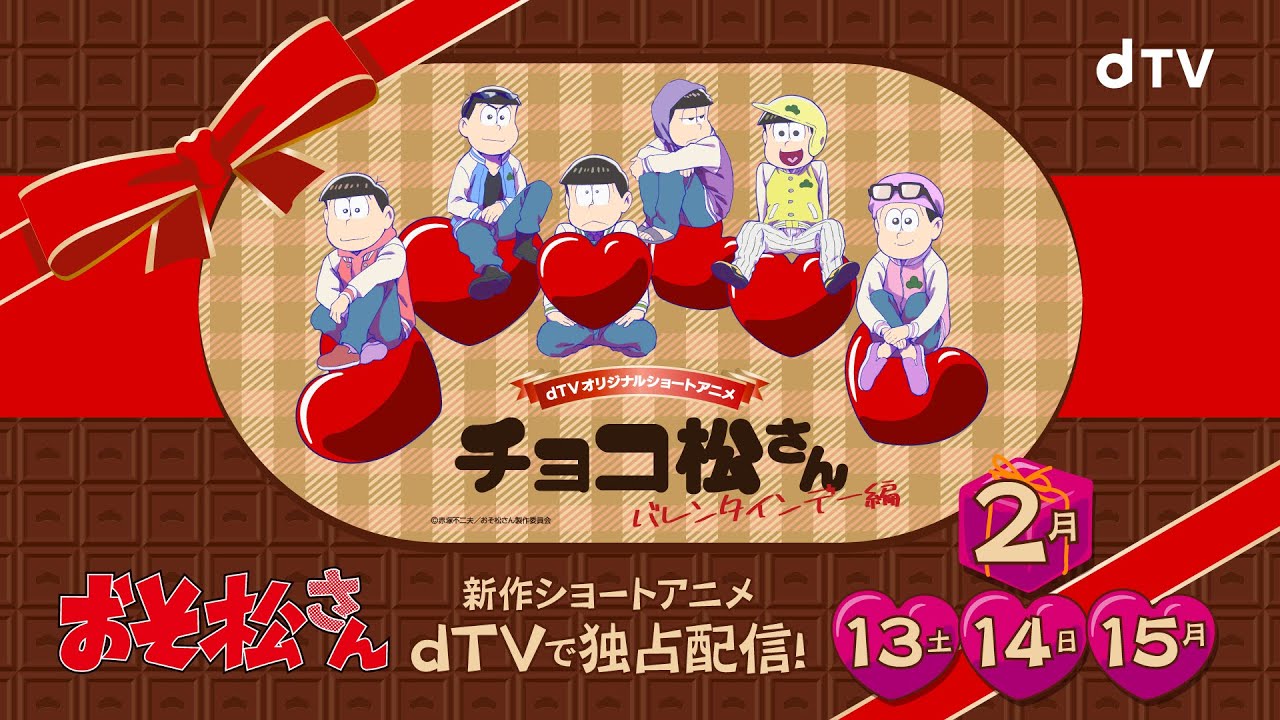 TVアニメ「おそ松さん」の新作アニメ『dTVオリジナルショートアニメ「チョコ松さん~バレンタインデー編~」』を、2021年2月13日(土)、14(日)、15(月)に各日1話ずつ、全3話をdTVで独占配信することが決定!!