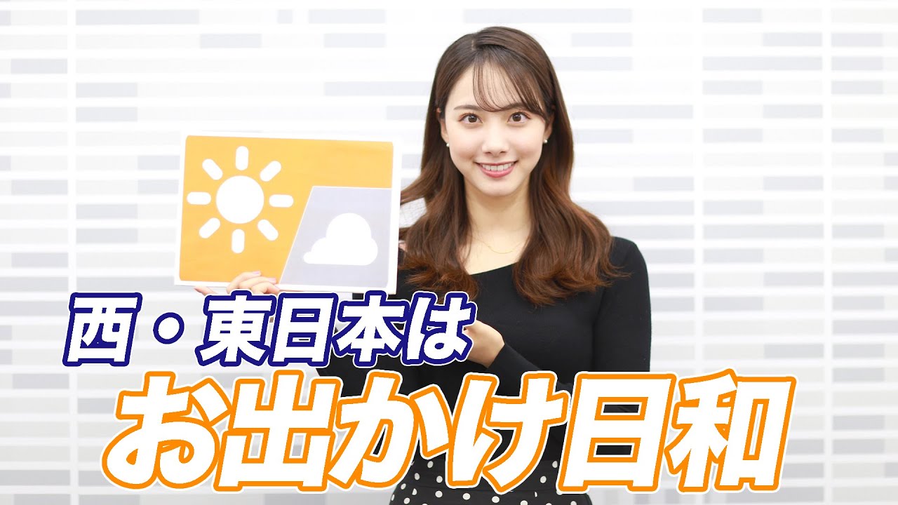Share Facebook Twitter Pinterest LinkedIn 11月8日(日)の天気を、ウェザーニュースキャスターの武藤彩芽がお伝えします。 西高東低の気圧配置となります。そのため、西日本や東日本〜北日本の太平洋側では、晴れてお出かけ日和。 一方、北陸〜北日本の日本海側は、日差しが届いても午後は雨が降りやすくなります。外出の際は雨具をお持ちください。 西日本や東日本は20℃前後まで気温が上昇し、日中は過ごしやすい体感。北日本は寒気が入って昼間でも寒さが増します。暖かくしてお過ごしください。それではお体に気を付けて素敵な日曜日をお過ごしください♪ 2020Casterウェザーニュースキャスターゲリラ豪雨ゲリラ雷雨ニュース予報北日本台風台風情報地震大雨天気天気予報情報東日本気象気象予報士減災西日本防災雨