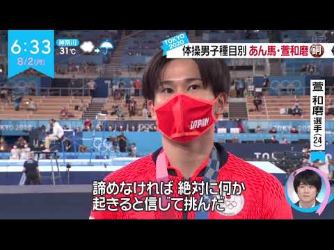 体操 男子種目別あん馬で萱和磨選手が銅メダルを獲得