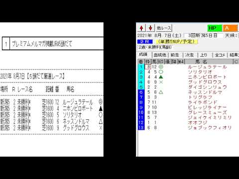 競馬予想メールマガジン配信結果 2021年8月7日 5頭BOX 1戦1勝