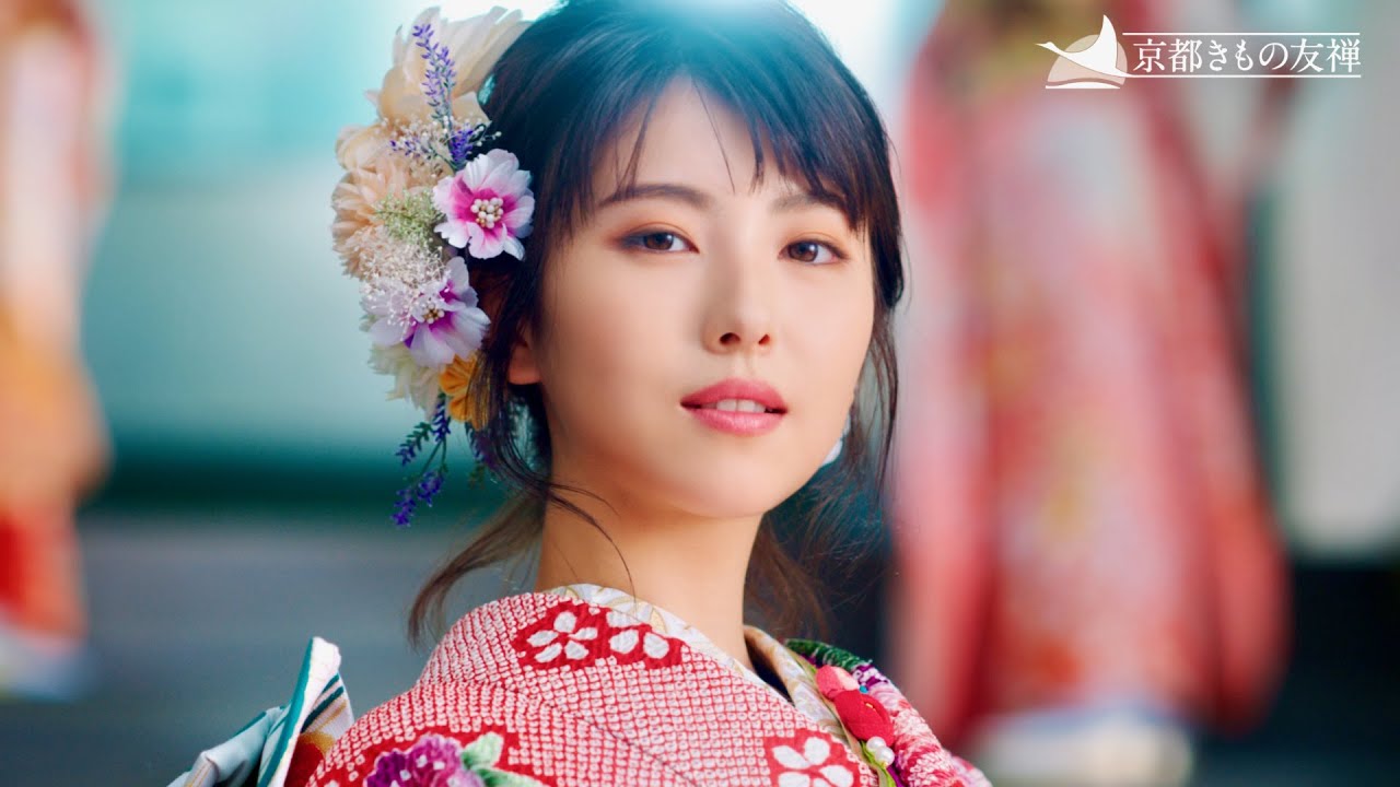 浜辺美波が色とりどりの振袖を着用して魅せる、様々な表情が毎年話題となる、京都きもの友禅のTVCM。