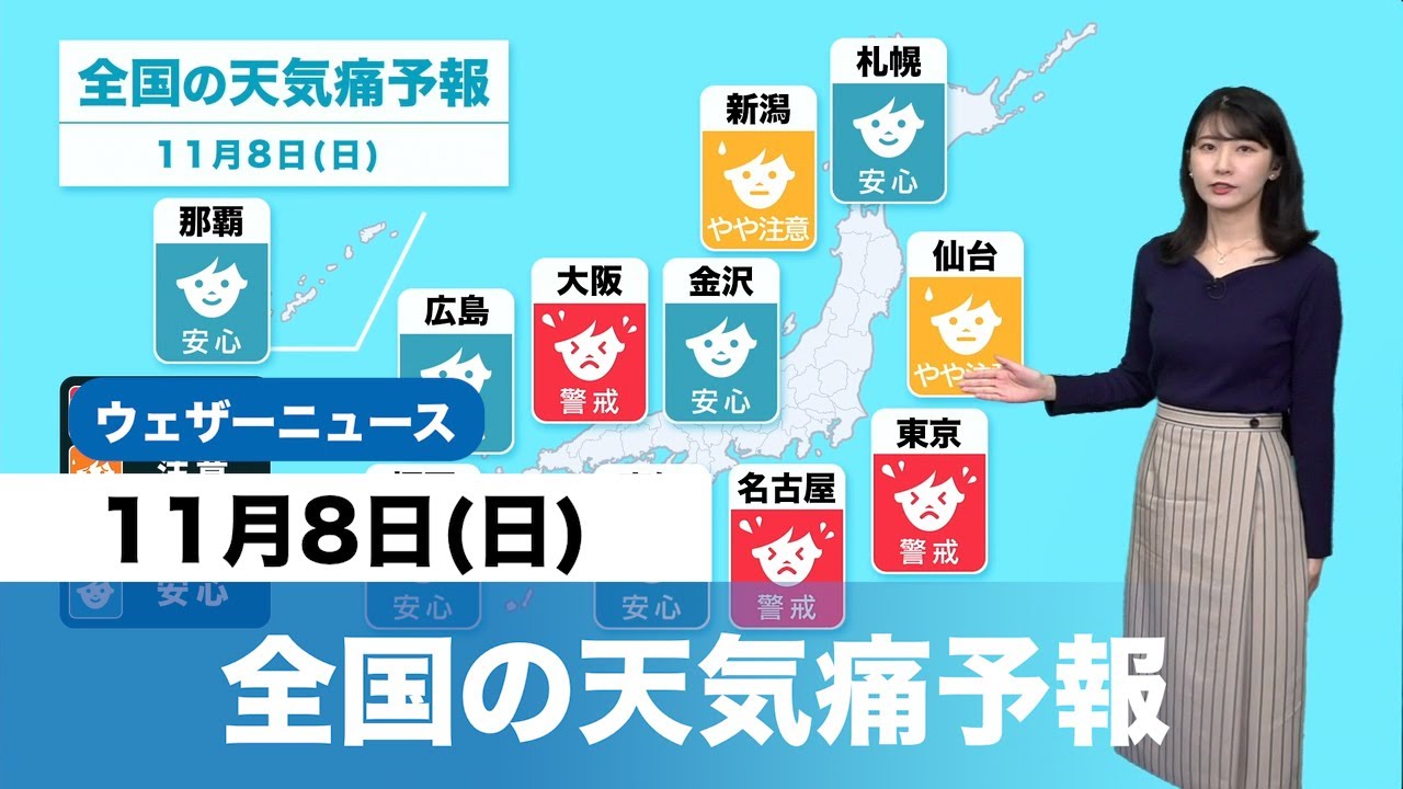 天気や気圧の変化によって起こる「気象病」や「天気痛」と呼ばれる頭痛やめまいなどの発症リスクを予想します。また、3時間毎の予報や気圧の変化も確認できるので、薬を飲むタイミングの参考にしてください。