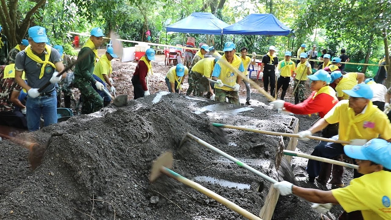タイ北部チェンライ郊外のタムルアン洞窟に閉じ込められていた少年ら13人が救出された現場で、ボランティアによる片付け作業が続いている。7月16日までの3日間で、近くの住民らのべ約4千人が参加する。