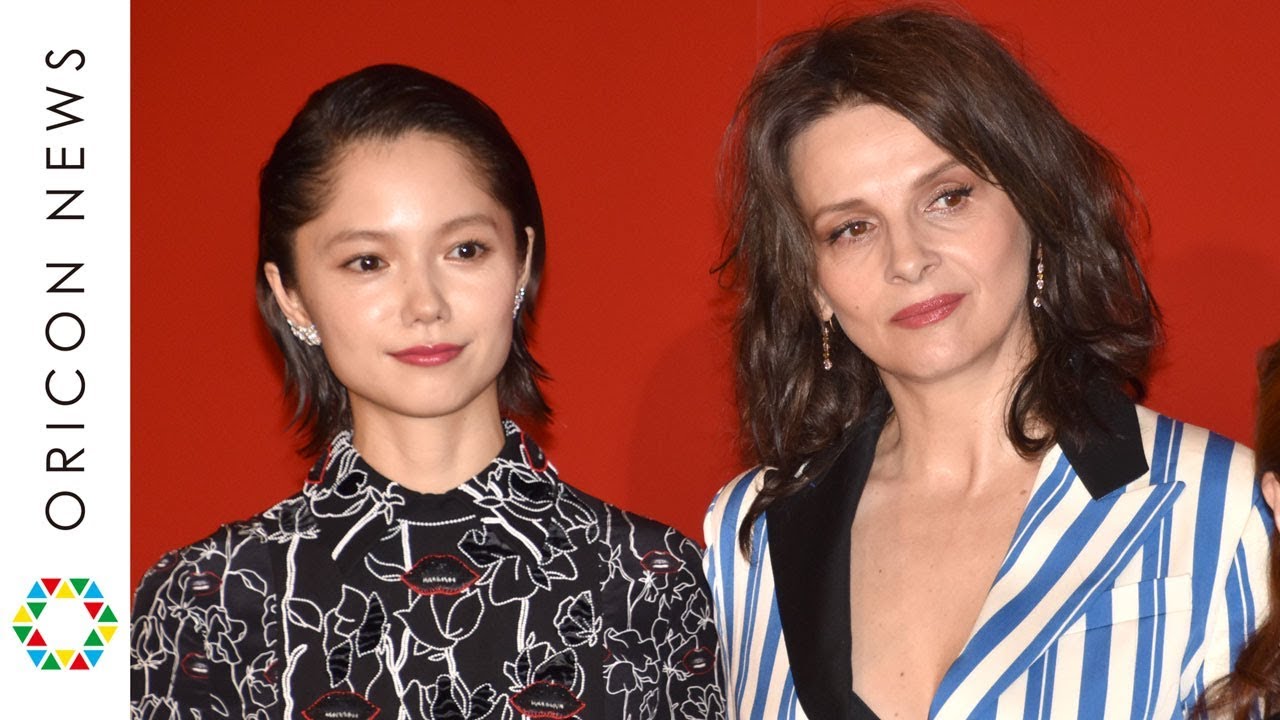 ビノシュへ花束をプレゼントした宮崎は「この場に立たせてもらえていることが恐縮で、幸せな一日です」と感無量。「このお話をいただいてから、時間が許す限りDVDを観て、ビノシュさんのお顔をずっと見ていた」と明かし「きのう、初めてお会いしたときには涙が出そうになって。棒のように固まり、監督に笑われてしまいました」と照れながら話した。