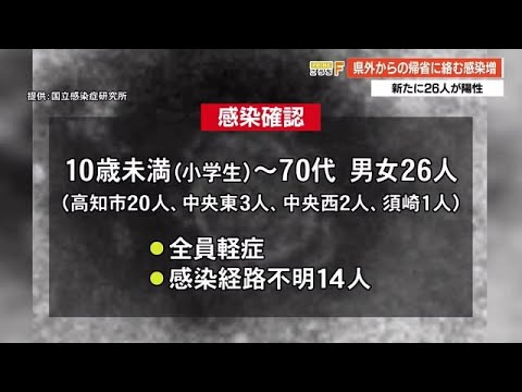 高知県で新たに26人が新型コロナウイルスに感染していることが分かりました。県外からの帰省にからむ広がりつつあります。