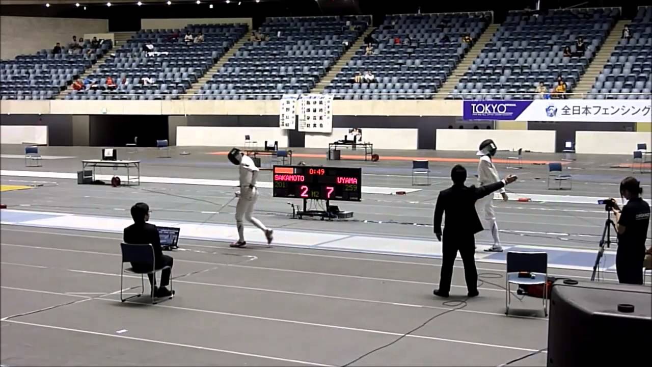 説明全日本フェンシング選手権大会個人戦二日目・男子エペ準決勝 坂本圭右選手VS 宇山賢選手の試合です。 .
