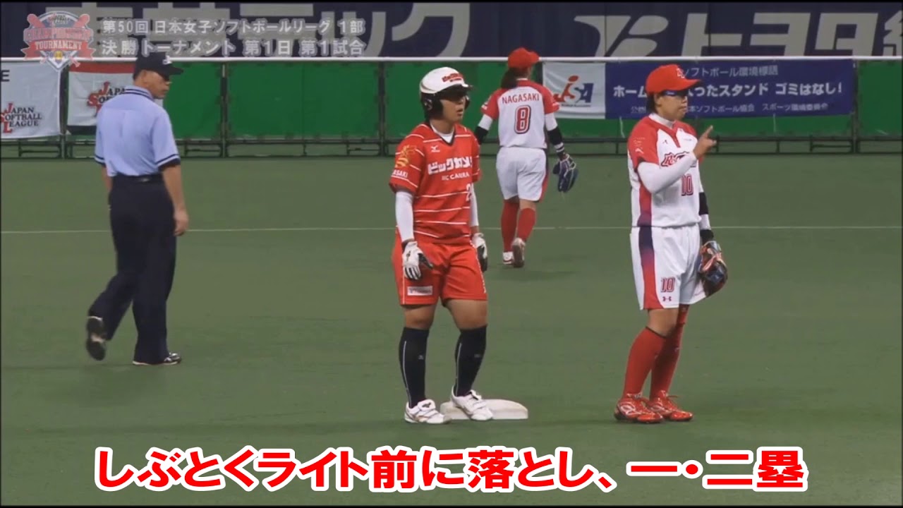 「第50回日本女子ソフトボールリーグ」1部決勝トーナメント 第1日第1試合は、21勝1敗でリーグ戦1位のビックカメラ高崎 BEE QUEENと17勝5敗でリーグ戦2位のトヨタ自動車 レッドテリアーズが対戦し、レッドテリアーズが7回表に山下りらのソロホームランで1点を先制したその裏、BEE QUEENは大工谷真波の安打で反撃の口火を切り、内藤実穂の安打、代打・降矢香の四球で二死満塁とし、「キャプテン」我妻悠香が逆転サヨナラタイムリーを放ち、2-1で劇的な勝利を収めた。 . olympics 2020Tokyo 2020tokyo olympicstokyo olympics 2020Tokyo Olympics Vlogソフトボール内藤実穂