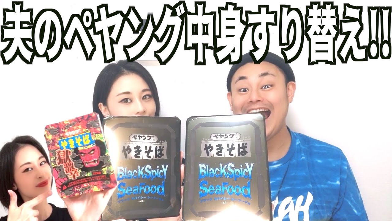新しいペヤングブラックスパイシーシーフードを普通に食べる企画だったのに妻が旦那のペヤングだけを獄激辛にすり替えたらとんでもないことにwと言う企画です!!