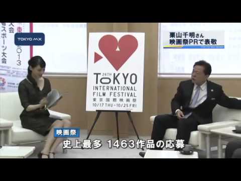 栗山さんは映画祭のセレモニーや海外からの来賓をもてなす「フェスティバル・ミューズ」に抜てきされ、実行委員長らと共に知事を表敬しました。映画祭で東京都はコンペティション部門を共催し、最高賞の「東京サクラグランプリ」作品に都知事賞を授与します。猪瀬知事は「映像の持つ力は大変な力だから、映画祭を盛り上げて東京を見たくなるような(ものにしたい)」と話しました。
