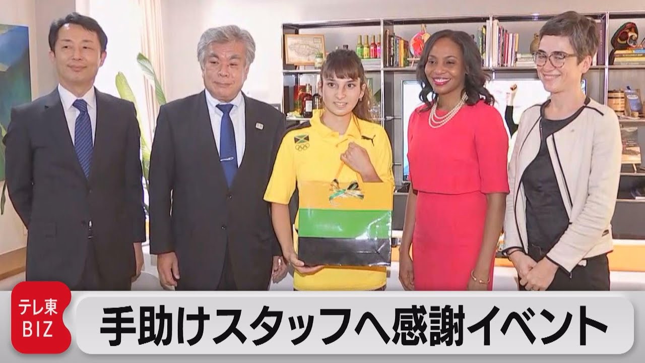 東京オリンピックの陸上男子110メートル障害で金メダルを獲得したジャマイカのハンスル・パーチメント選手を手助けしたとして話題になっていた大会スタッフのストイコビッチ河島ティヤナさんへの感謝イベントが19日、東京港区にあるジャマイカ大使館で、開かれました。