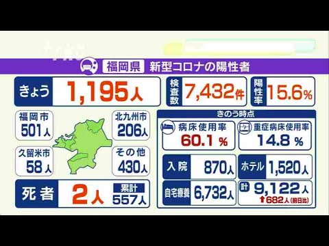 福岡県は20日、新型コロナウイルスの検査で、新たに1195人の陽性を発表しました。