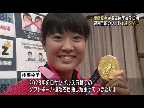 東京オリンピックのソフトボールで金メダルを獲得した後藤希友投手が、出身地である名古屋市の河村市長を表敬訪問しました。