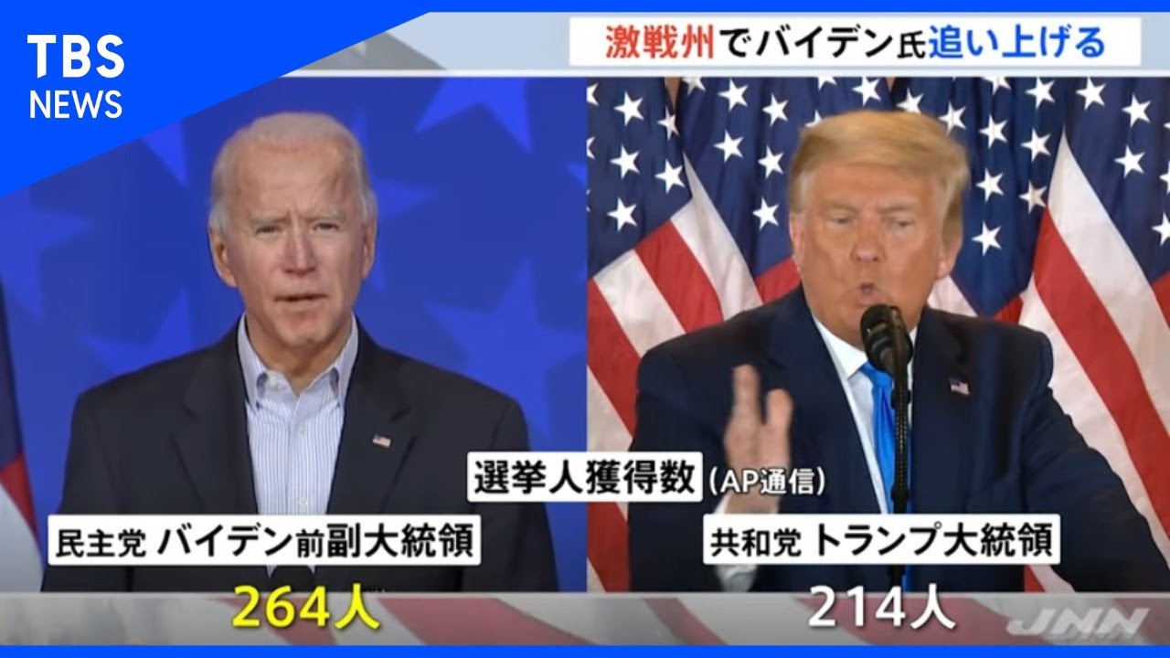 アメリカ大統領選挙、民主党バイデン候補があと一州を獲得すれば当選確実という状況ですが、激戦州の結果がまだ出ないまま開票開始から2日が経ちました。
