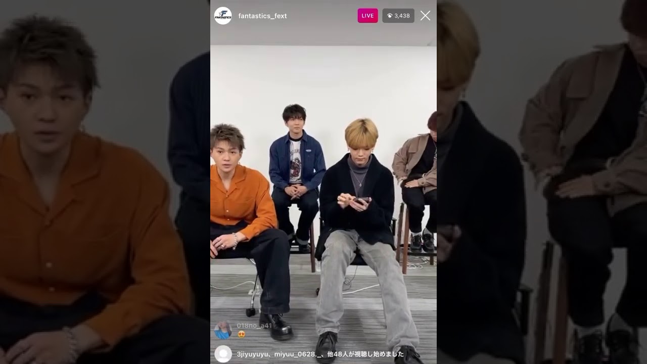 FANTASTICS インスタライブ ( 2020-11-12 ) マネキン ナイト フィーバー 最速試写会 & ファンミーティング 直前インスタライブ 途中3回ほど通知が来たりタップしてしまったり等で スタンプ入ってます🙏 ごめんなさい🙏🙇♀️🙇♀️ FANTASTICSLDHインスタライブマネキン・ナイト・フィーバーマネキンナイトフィーバー中島颯太佐藤大樹八木勇征木村慧人