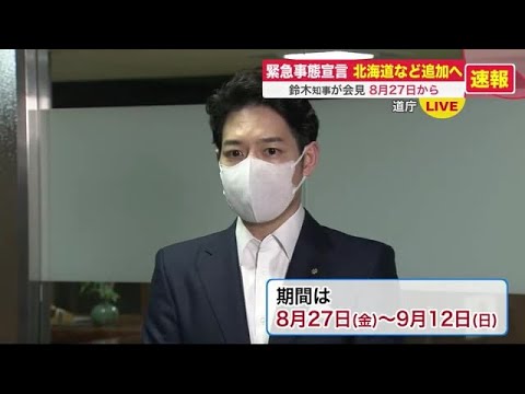 鈴木知事、「北海道に緊急事態宣言が発令されることが決定しました。緊急事態宣言の期間は8月27日から9月12日までの17日間」と報道陣に伝えました。