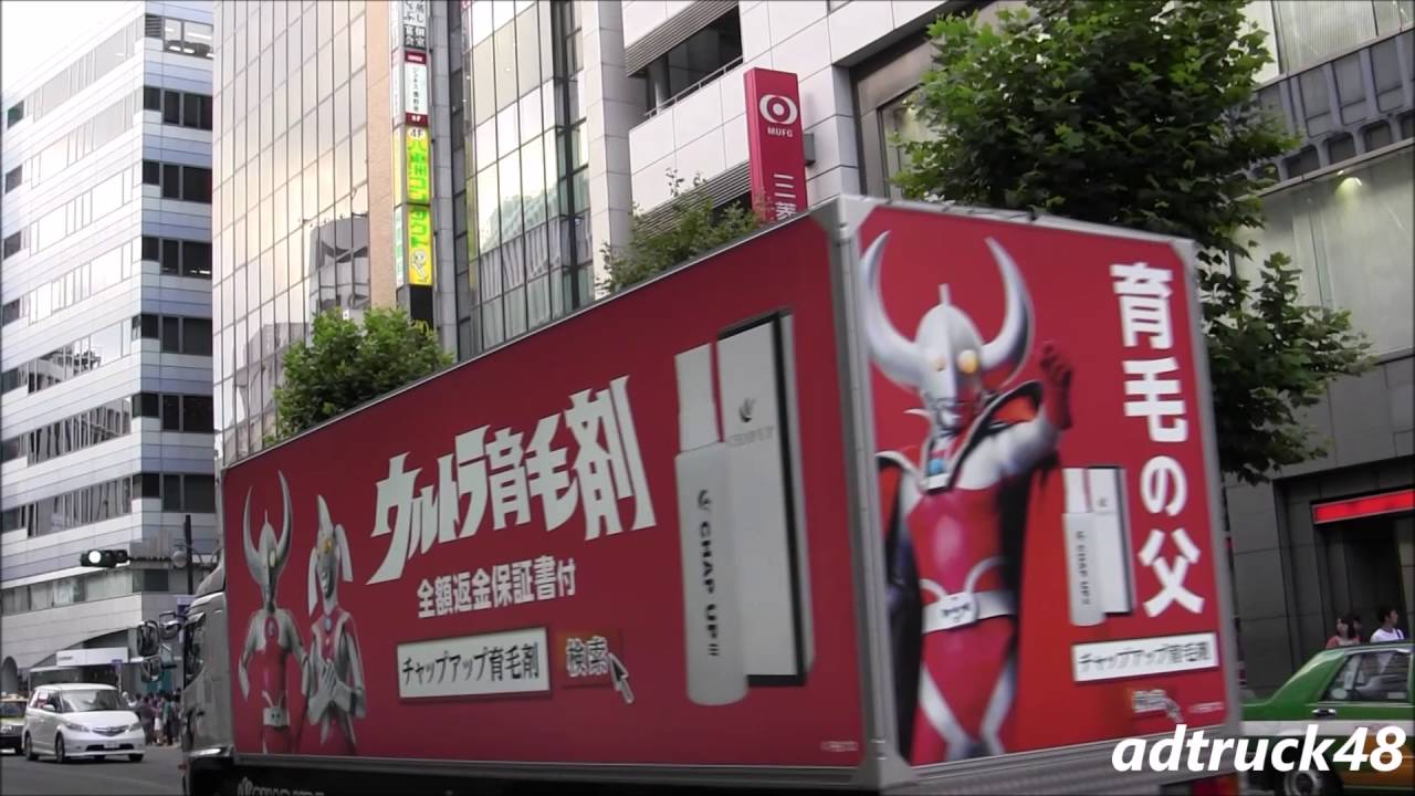 渋谷を走行する、ウルトラ育毛剤に、板野友美推奨の脱毛サロン! 昨今の宣伝トラックの主流は “毛” にあり? ad-truckadtruck48アドトラックアドトレーラーウルトラ育毛剤キレイモ宣伝トラック板野友美
