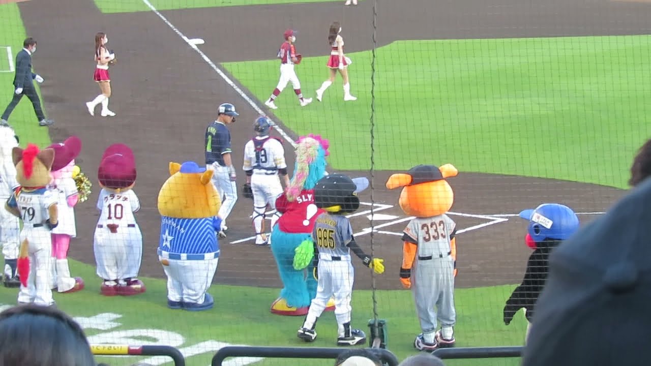 マイナビオールスターゲーム2021 始球式 地元少年野球チームの選手が始球式。打者は東京ヤクルトスワローズ山田哲人選手 マスコット全員集合してわちゃわちゃしてます。中心に入れないドアラさん 右の方開いてましたが(笑)あきらめて背中向けてるw #オールスターゲーム #山田哲人 #マスコット #ドアラ #ジャビット #トラッキー #スラィリー #つば九郎 #DB.スターマン #マーくん #クラッチ #クラッチーナ #スイッチ #レオ #ハリーホーク #フレップ #バファローブル OlympicOlympicsオリンピック東京 2020 オリンピック東京 2021 オリンピック東京2021マスコット東京オリンピック
