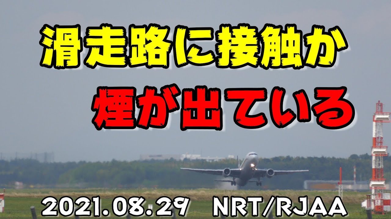 機体の後方が滑走路に接触したので白い煙がでていた