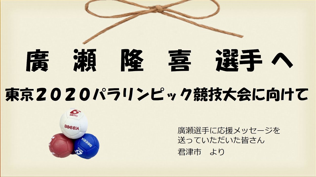 東京2020パラリンピック競技大会に出場する君津市出身のボッチャ競技選手の廣瀬隆喜さんへの応援メッセージ動画です。