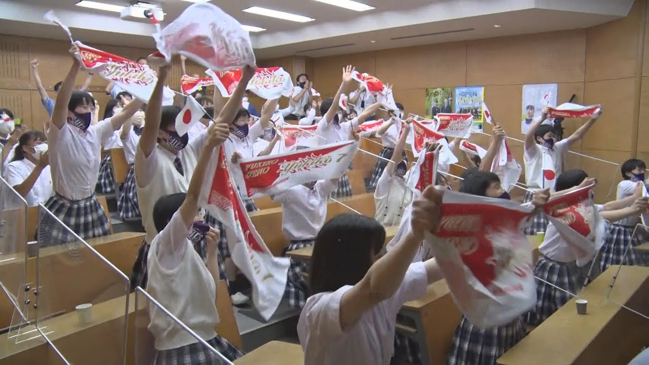 エース上野由岐子が投げた球がファウルゾーンに力なく上がり、キャッチャーのミットに吸い込まれた。ソフトボール日本が宿命のライバル米国に勝ち、13年ぶりに金メダル。上野の母校、福岡大付属若葉高校(福岡市)では、女子寮の生徒や学校関係者約40人が集まり観戦。上野から7月に学校へ贈られたマスクやタオルを身に着け、「日本! 由岐子!」と声援を送り、勝利の瞬間、歓喜した。 . KYODO NEWSolympics 2020Tokyo 2020tokyo olympicstokyo olympics 2020Tokyo Olympics Vlogエースソフトボール上野由岐子共同通信日本母校福岡大付属若葉高校米国金メダル