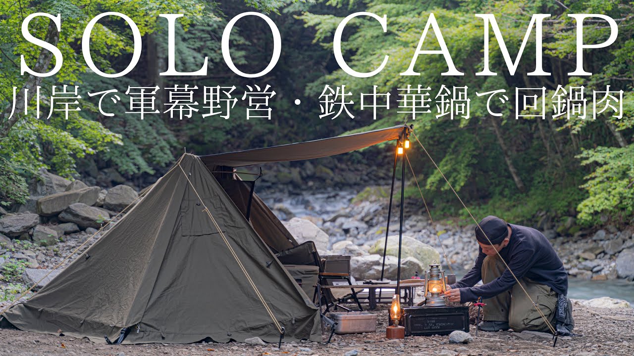 川のほとりでソロキャンプ。川と軍幕の相性も抜群で最高な野営でした♪ 新しいクーラーボックス、本当にかっこいいです! 生地、素材、色、内部構造も含めディティールが美しくて、感動しました! 今回の鉄中華鍋修行はホイコーローです! シンプルだからこそ、野菜と肉の旨味が最高でした♪ 川のほとりでの軍幕野営は秋の涼しさを感じることが出来て、これからの秋キャンプを創造出来た、ステキな時間でした♪