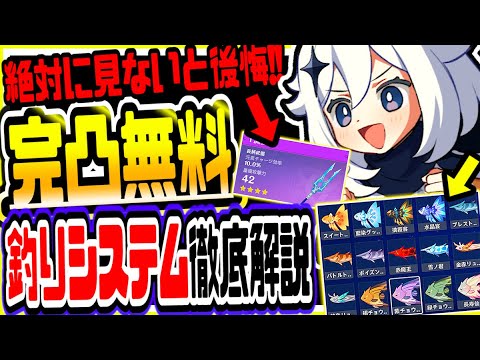 原神げんしんの新機能釣りシステムの遊び方や釣り餌釣り竿釣り場無料武器漁獲入手方法塵歌壺観賞魚等まとめて徹底解説。この他にも稲妻新キャラ宵宮早柚雷電将軍九条心海アーロイの性能解説や公式最新情報新ガチャ新イベント攻略動画も上げています。最後にこの動画を見てる人にお願いです。また攻略動画を作って欲しいなと感じた人はぜひ高評価を押してべあてぃぼんを応援してください。原神で最も重要な原石報酬などの情報を逃して後悔することや無課金イベント攻略新キャラや武器ガチャの判断に迷うことが無くなります。このチャンネルではリーク画像や情報を扱っていません。考察情報も公式情報を元に楽しむ内容となっています。