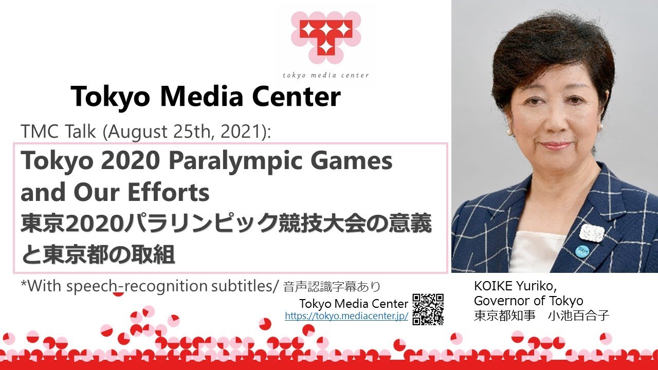 TMCを通してメディアの方に発信される小池知事によるオンライン講演「東京2020パラリンピック競技大会の意義と東京都の取組」を配信します。